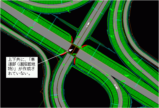 立体交差箇所で「車道部」の作成漏れがある間違いです。