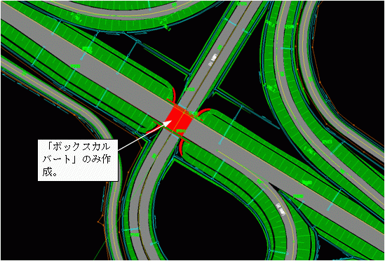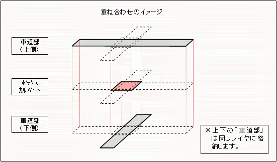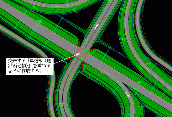 立体交差箇所では、交差する「車道部」を重ねるように作成します。